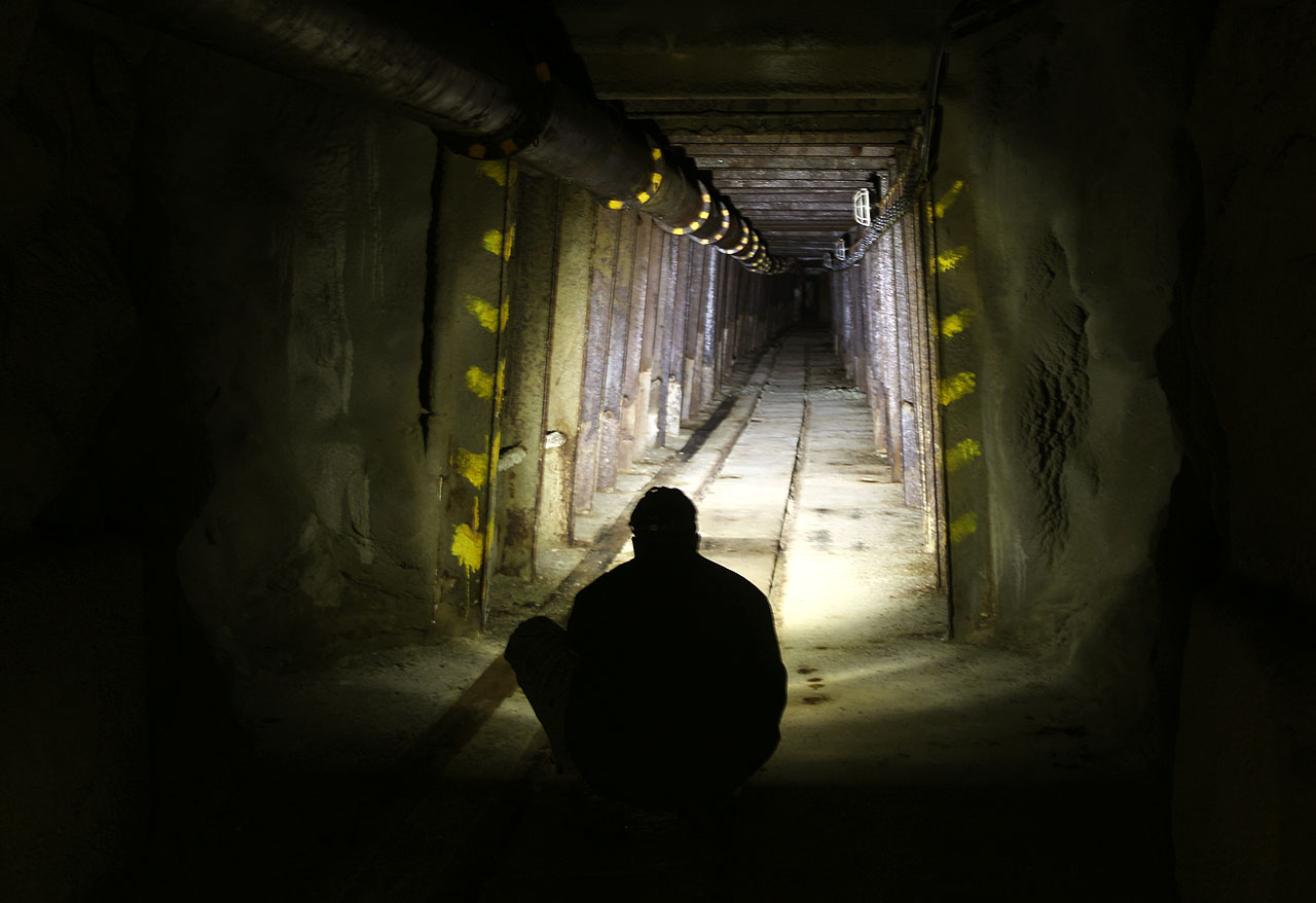 Po spuštění na laně do hloubky cca 10 m (tedy bezpečně pod hladinu Svratky) se naskytl návštěvníkům výhled do chodby směrem k opuštěné železniční poliklinice. Jiným směrem z bývalé jámy chodby nevedou. (Brno, CZE) 11. 1. 2018 | ||