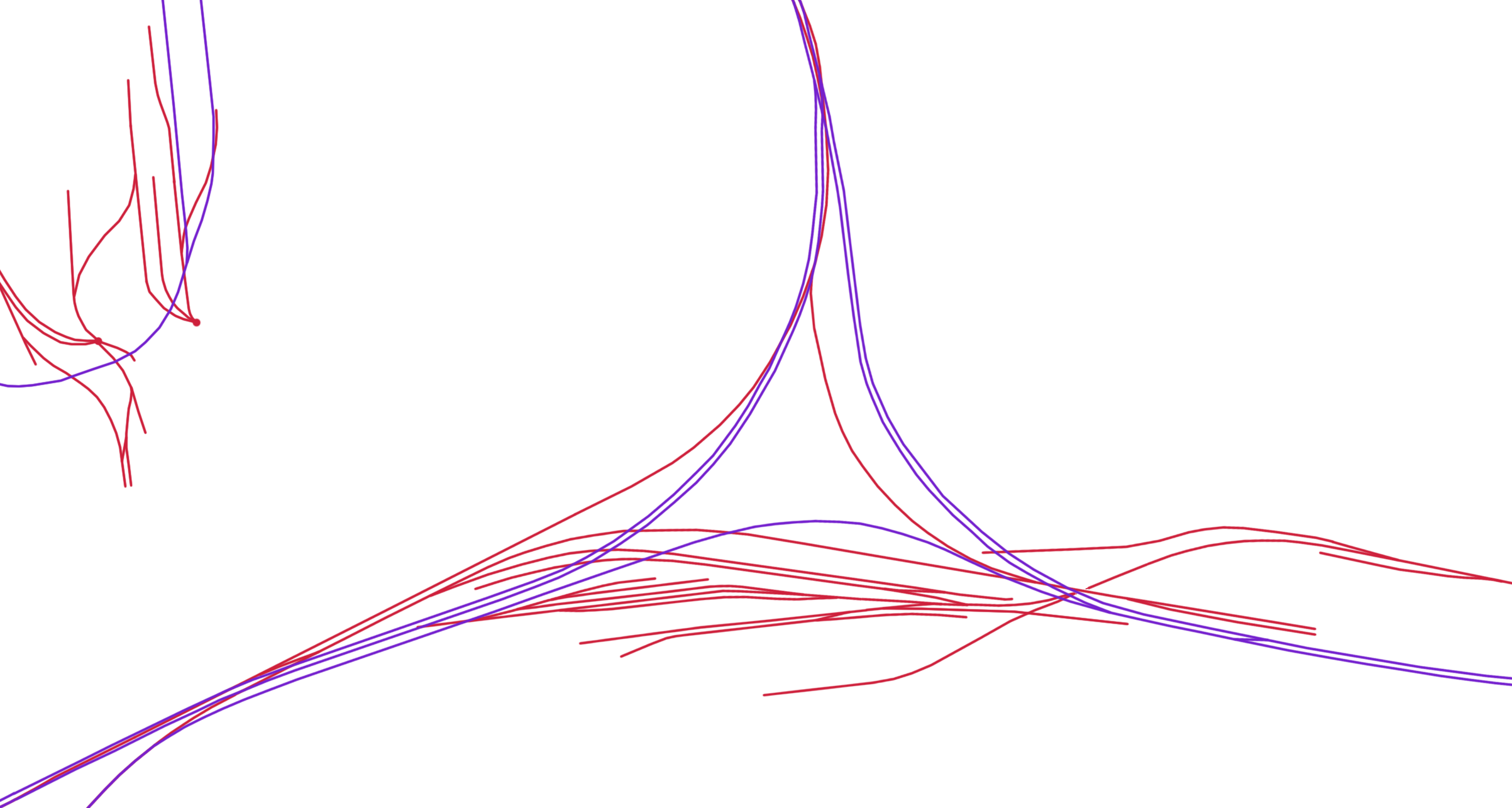 |  | | Opačný pohled na odbočku Brno-Černovice odbočka k jihu zpod mostních pilířů na Nezamyslově ulici. |