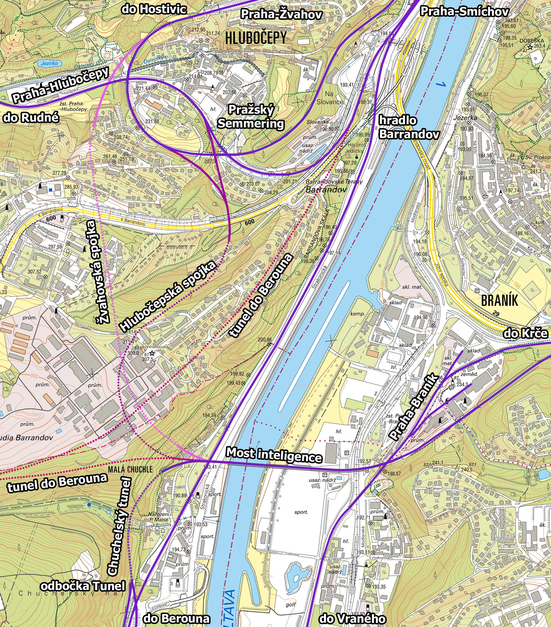| Ano, prameny uvádíte, kromě tedy nyní dodatečně uvedeného odkazu na územní mapy Prahy. Otázka je z jakých dokumentů vycházeli autoři oněch pramenů, které zde uvádíte (??) Na patřičných odkazech jsou zase uvedeny nepříliš věrohodné. Knihy jsou dnes plné nepřesností, tudíž to pro mne není adekvátní zdroj (vyjma snad těch od p.Navrátila). To co se běžně píše o Chuchelském tunelu jsou jen mýty, neboť jeho profil je standardně dvoukolejný v celé své délce (dle platných norem své doby). O Žvahovské spojce uvedené na Vámi zmíněných územních mapách (ještě i z r.1986) jsem neměl příliš povědomí, pravdou je i to, že novodobé fondy jsou v archivech dosud nezpracovány. Pokud byl tento projekt opravdu míněn vážně (což asi byl), bylo by dobré zapátrat i jinde (SÚDOP, Stavební správa SŽDC apod.). To je samozřejmě výzva pro všechny, především ty, kteří by mohli mít k těmto podnikovým archivům přístup. | ||