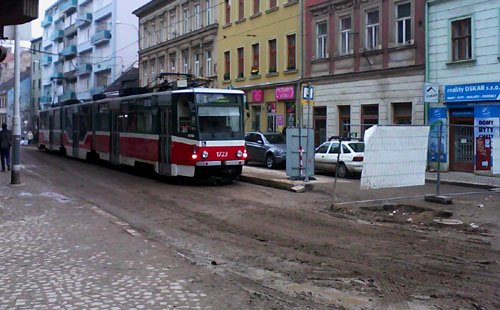 Popis: Rekonstrukce ulic Husovy a Pekařské v Brně si vyžádala čtrnáctiměsíční výluku tramvajové dopravy a tím pádem naprostou reorganizaci tramvajových linek ve městě. Linka číslo 7 končí jízdu v úvraťové zastávce Šilingrovo náměstí, která je provizorně umístěna ve značném sklonu u ústí ulice Kopečné. Netradiční řešení bylo vynuceno rozsahem stavby, koleje končí doslova v bahně.