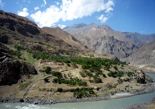 Popis: V několikasetkilometrovém údolí řeky پنج (Pandž) jsou porůznu roztroušeny vesničky na tádžické i afghánské straně. Zatímco po tádžickém břehu vede funkční silnice, afghánský břeh lemuje pouze pěší stezka, po které projde maximálně osel. Také elektrifikace chybí a vesničky se krčí okolo zavlažovacích kanálků, které svádí z hor každý malý pramínek vody. Vodu z řeky nelze použít, protože by se musela čerpat někdy i desítky metrů nahorů ze skalanatého koryta na suchou pláň.
