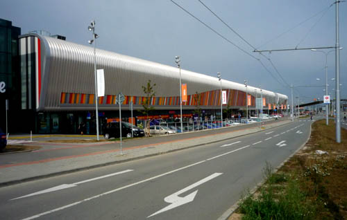 Popis: Stejně jako okolní budovy nového univerzitního kampusu Masarykovy univerzity, pyšní se nové nákupní středisko Campus square obsahující zejména hypermarket Tesco futuristickými tvary. Příjemnou vymožeností je lávka, která spojuje budovy kampusu přímo s nákupním centrem a menzou.