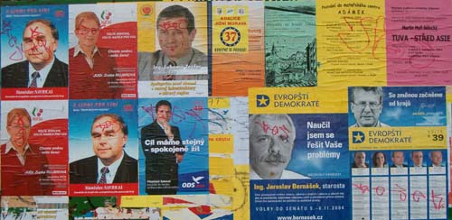 Popis: Volební plakáty téměř překryly náš stínadelský - v roce 2004 se tradiční adamovská hra Stínadla se Bouří na motivy knížek Jaroslava Foglara konala ve stejný den jako volby do senátu.