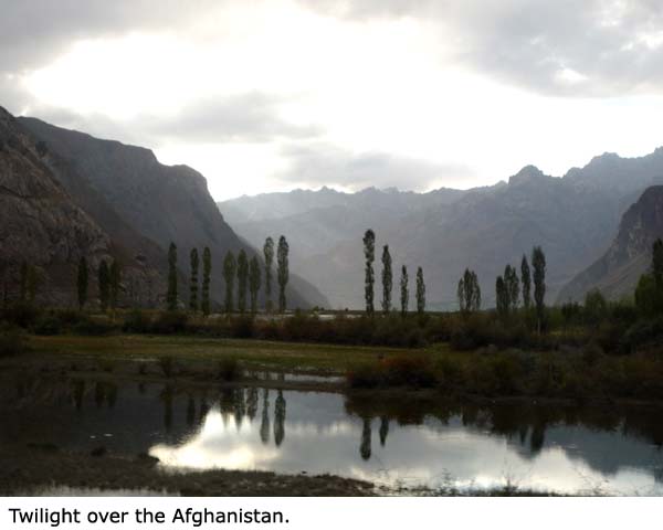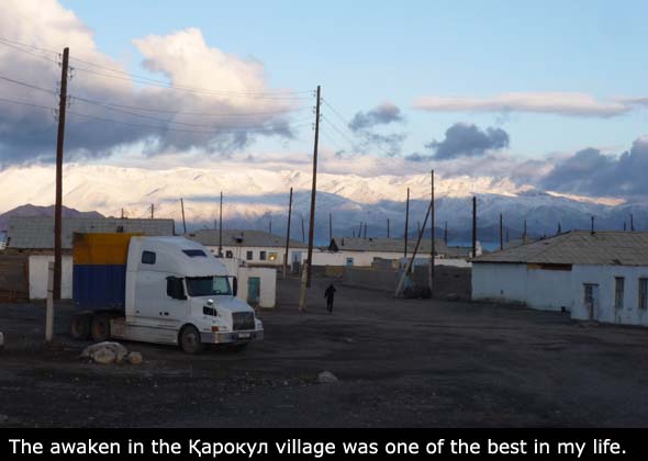 Probuzení na břehu Amyderýi, naproti jí říkají Amudaryo.