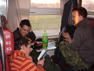 A jak se měl Zandt?Poté, co se předevčírem vrátil pro naše věci, zmizeli jsme mu na hřebni ve tmě z očí. Nevěděl, kde jsme, a nechtěl sejít nesprávnou cestou, proto zůstal nahoře a dokonce se mu podařilo si tam ustlat. Karimatku přišpendlil ke sněhu čtveřicí sněžnic a ve svém výborném spacáku přespal ve vichru až do rána, kdy sešel do civilizace stejnou cestou, jako jsme o den dřív vystoupali společně nahoru. Protože neměl mobil, zamířil v Рахіву do internetové kavárny, kterou už jsme znali z dřívějších cest na Ukrajinu a kontaktoval Ďábla s Bárou, kteří nám posléze dali vědět mobilem. Vlakem pak pokračoval okolo horského hřebene do Ворохти, kde ho na autobusovém nádraží zachytil jeden ze záchranářů a dopravil jej k nám.