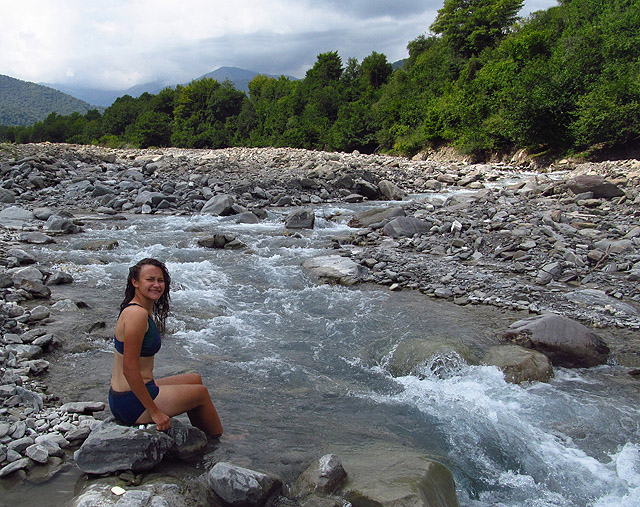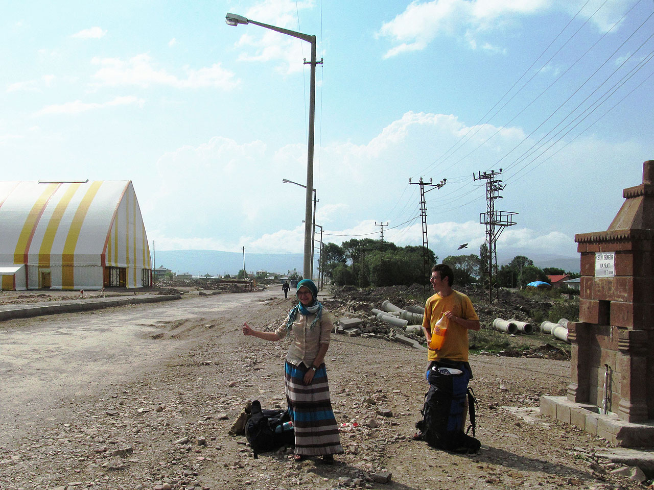 | | Nad Artvinem se staví nová přehrada a cesty se překládají na velkolepé mosty a do tunelů. Autem nás svezl kamarád z Íránu, který s námi pokračoval až do Gruzie. |