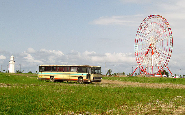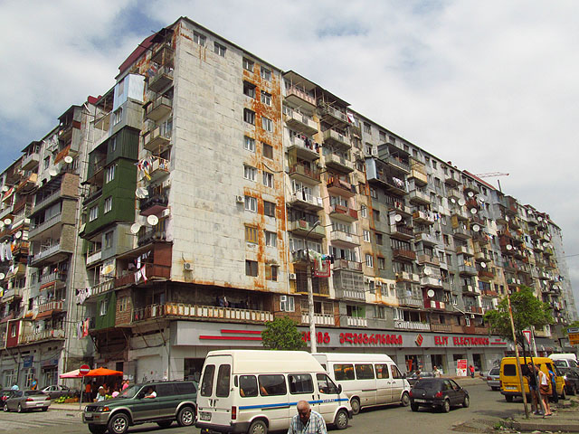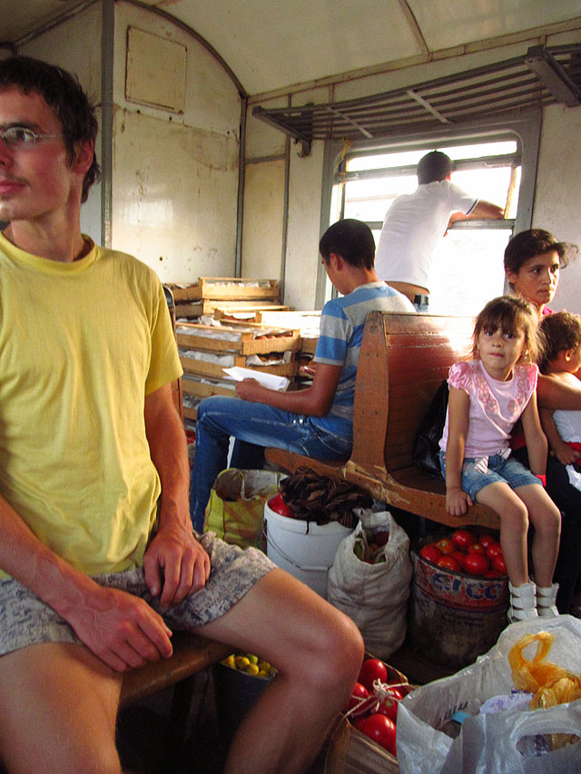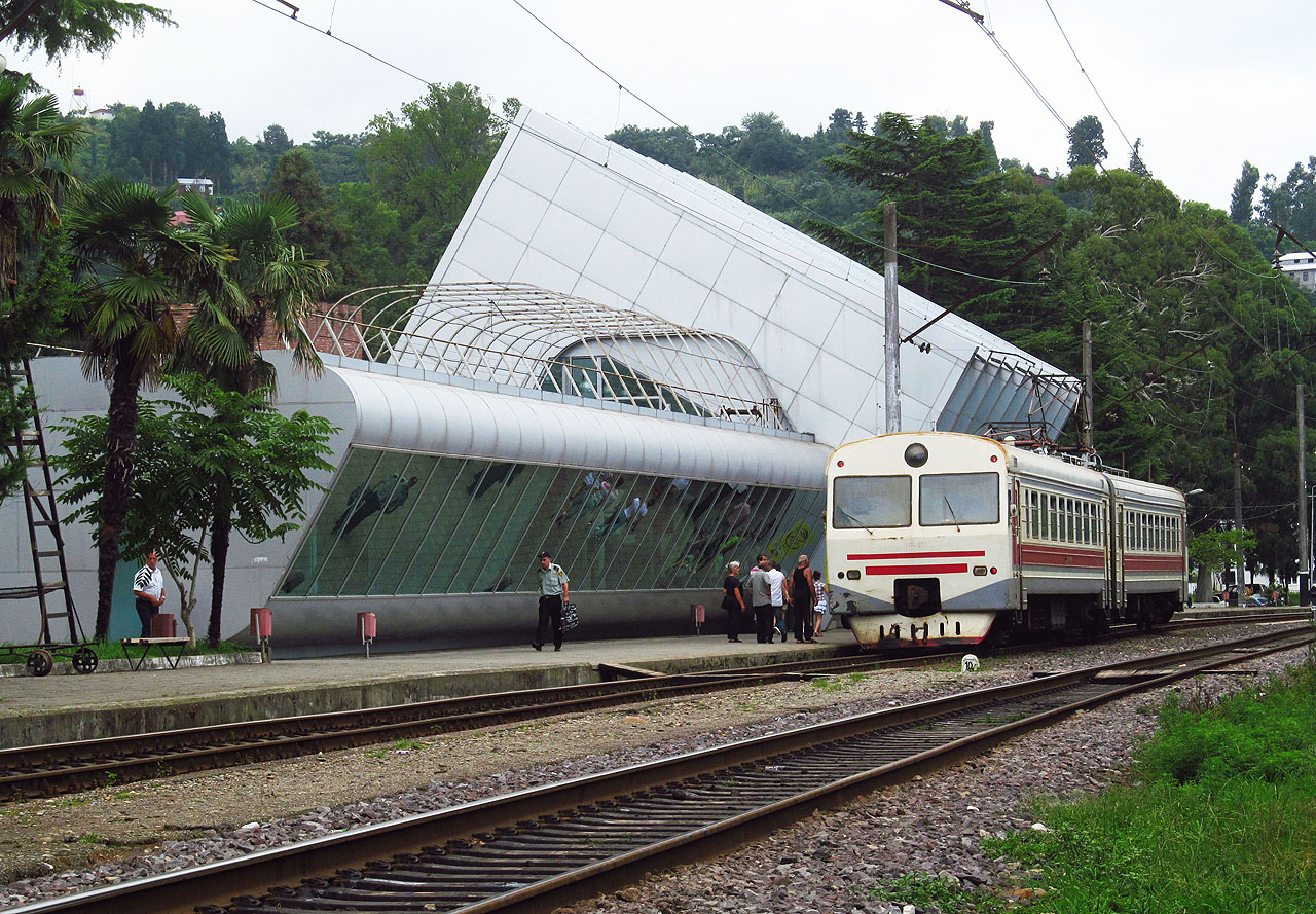 | | Železniční síť je za Kavkazem omezená. Vzájemná nepřátelství Gruzie s Ruskem a Arménie s Tureckem a Ázerbajdžánem znamená, že vlaky z Batumi končí jen v Tbilisi a Jerevanu. Znalci gruzínského písma na voze snadno přečtou nápis Tbilisi - Batumi. |