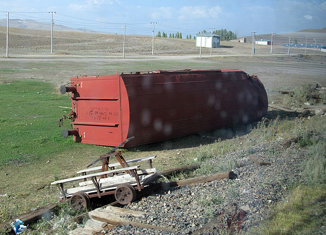 | | V Ankaře pouze čtyřhodinové občerstvení a přestup na - tentokráte již klasický - vlak směr Sivas. Všechna okénka v tureckých vlacích mají vyleptaný státní znak. |